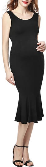 A flared mermaid skirt balances your growing bump in this curve-hugging midi that's ready for all your weekend events. The soft stretch knit makes this dress a great option for all three trimesters and beyond.