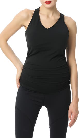 Work up a sweat at your morning yoga class before, during and after pregnancy in this stretchy performance top designed with a racerback for easy movement.