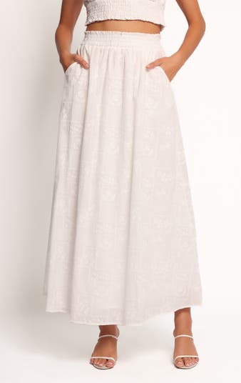 Subtle floral embroidery adds to whimsical style of a flowy maxi skirt cut from soft, lightweight cotton that's perfect on warmer days.