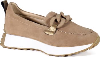 A contrast rubber sole puts a sporty spin on an updated loafer topped with monochrome chain links.