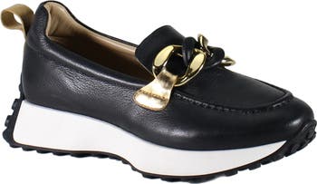 KIND WORDS is all you'll have for this loafer-inspired sneaker by Diba True, the rich suede or leather upper features unique accents. While the athletic 1-inch rubber sole is contrasted by the chain link on the front of the sneaker, providing the perfect look while keeping you comfortable all day on your feet.