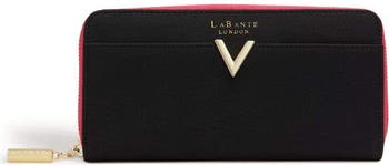 The Kindness Wallet combines a sleek two-tone design with practical everyday organization. Crafted from soft, smooth vegan leather, this zip-around style offers a refined look while keeping essentials securely contained. The thoughtfully arranged interior features multiple card slots, a full-length note compartment and a zip coin pocket, all accented by a contrast lining for a distinctive finish. A rear exterior zip pocket provides quick access to frequently used items, while signature V-shaped hardware and a foil-embossed logo add a polished touch. Inside, a discreet message offers a meaningful signature detail. Compact yet spacious, this wallet is designed to fit easily into handbags while keeping everything neatly organized.