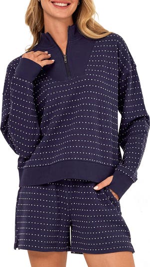 Kindra Embroidered Dot Quarter Zip Top