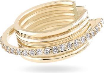 A diamond orb rings this grooved 14-karat gold ear cuff that sparkles like something celestial.