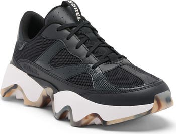 A wavy sole lends instant cool to this bold sneaker that features an intricate upper crafted from layers of snakeskin-embossed leather and mesh.