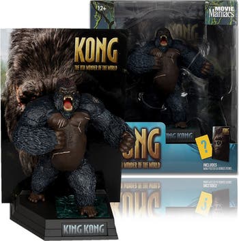 Get ready for breathtaking action in this thrilling epic adventure about a legendary ape captured on a treacherous island and brought to civilization, where he faces the ultimate fight for survival. Incredibly detailed limited edition 6" scale posed figure. Includes scenic printed back drop and environmental base display. Includes a mini poster with numbered certificate of authenticity on the back. Hidden surprise included.
