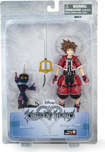 - AUTHENTIC DESIGN: Based on his appearance in Kingdom Hearts II, this exclusive action figure depicts Sora in his Valor form.