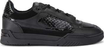 Casual days can still be luxe with this monochrome mixed-media sneaker detailed with high-shine lizard-embossed panels and tied with tubular laces.