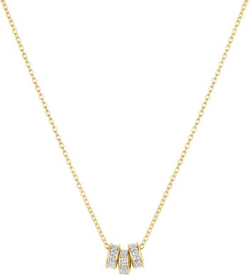 A chic trio of sparkling pave rondelle beads effortlessly slide along a delicate chain, creating a modern necklace with subtle, everyday shine.