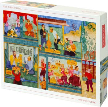 KINSTLER - HOOKAH HOUSE, 26.5" X 19.25" 1000 PIECE PUZZLE - In Iran-born, Chicago based, artist Orkideh Torabi’s Hookah House a vibrant scene unfolds across many rooms, scenes of men drinking, smoking, and gabbing away in their safe space away from the womenfolk. The narrative here is culled from Torabi’s memories of gender segregated spaces in Iran and features her ever growing cast of male characters, men both good and not so good- some just plain ridiculous- enjoying their little man-made worlds. PRODUCT INFORMATION: - 1,000 piece puzzle - Four page color insert included in box - Completed puzzle size: 26.5x19.25 in (67.30x48.90 cm) - Box size: 10x8x2in (25x20x5cm) - Designed in Brooklyn, NY | Printed, assembled, and packed in the USA. - Made with 100% recyclable materials. ABOUT THE ARTIST: Orkideh Torabi was born in Tehran, Iran and lives in Chicago. She earned her MFA from the School of the Art Institute of Chicago in 2016 and she received her MA and BFA from The University of Art in Tehran. Recent solo shows include Museum of Contemporary Art Atrium, Chicago (2021); Salon Nino Mier, Cologne (2021), and Half Gallery, New York (2022).