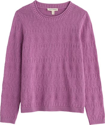 Mixed stitch styles inspired by Cornish fisherman designs texture a crewneck sweater knit from pure organic cotton.