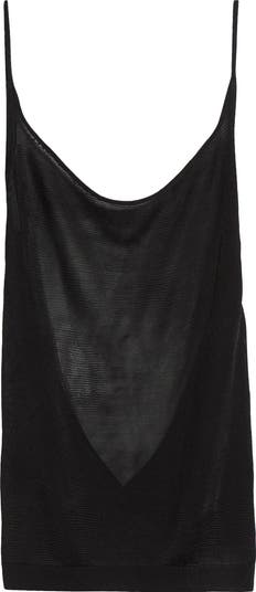 This semisheer tank cut with a low V-shaped back from a delicate, silky viscose knit is a quietly seductive piece for your minimalist wardrobe.
