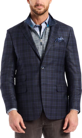 A classic plaid grids a wool-blend sport coat lined with the brand's signature whimsical style. A pull-out pocket square completes the polished look.
