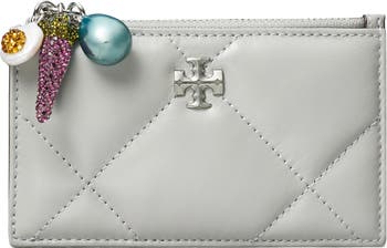 A trio of charms bring a playful feel to this leather wallet featuring the signature diamond quilt and double Ts.