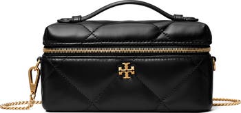 A gleaming double-T logo makes a signature statement against the diamond-quilted leather of a spacious train case perfect for stylishly storing your essential cosmetics while on the go.
