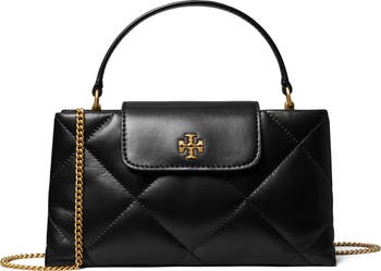 The iconic logo charms the front of a smart quilted crossbody bag designed with dual compartments to keep your essentials easily organized.