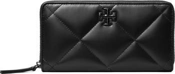 Iconic logo hardware makes a signature statement against the diamond-quilted leather of a slender wallet perfect for securing your cards, cash and coins while on the go.
