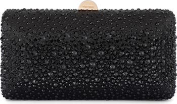 Luminous crystals amplify the glamorous allure of an evening-ready clutch outfitted with an optional chain strap for convenient hands-free wear.