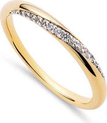 Shimmering pavé stones create an artful twisting design on this slim band plated in 14-karat gold.