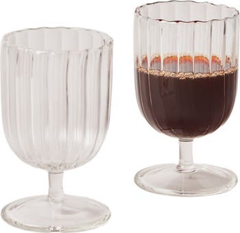 Kira stemware are an elegant & beautiful range of delicately mouth-blown glasses. Their slender silhouettes feature a delicate raised liner pattern with a tiny wave-like rim, Kira stemware glasses are ideal for serving your guests delicious beverages both at intimate casual gatherings and cheerful dinner parties. Dimensions: 10.5(H) x 6.2 (W) cms 6 oz. 4"H x 2.5"W