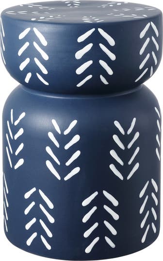 Inspired by African drum shapes, our Bohemian garden stool has a chic, modern vibe. The two-tone design features a stylized arrow pattern all over. Tuck one beside a chair, or use two or three in front of a contemporary living room sofa.
