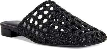 A woven upper in faux leather gives refined resort vibes to a square-toe mule.