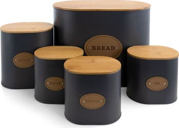 - Set: 4 Piece Canister Set with 1 Bread Box