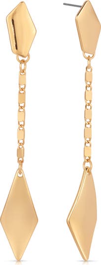 Geometric earrings catch the light with flattened links and kite-shaped drops finished in gleaming 18-karat yellow gold.