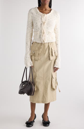 Hewing to the theme of carefully curated disarray that dominated the label's spring '25 runway, this wool-blend cardigan features a shunken fit and threadbare patches suggestive of a laundry mishap.