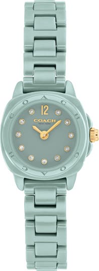 Crystals ring the dial, adding sparkle to polished sage ceramic of this bracelet watch from the brand's popular Kitt collection.