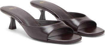 A go-to slide sandal is reimagined with a tapered strap and kitten heel for walkable comfort.