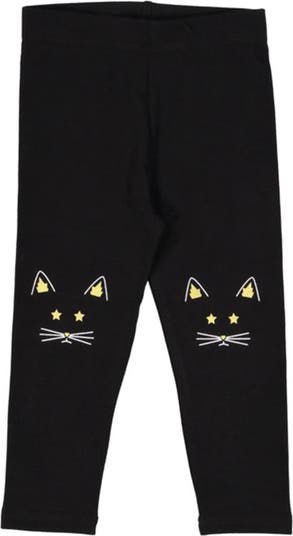 - Embroidered cat faces with star details on each knee