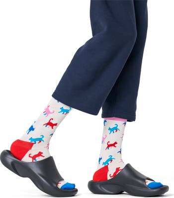 Colorful cats brighten these crew socks knit from soft cotton-blend yarns and finished with a reinforced heel and toe for lasting comfort and durability.