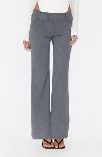 A low-slung silhouette adds a shot of sass to classic pants offered in a timeless shade of stormy grey.