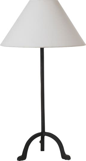 Crafted from cast aluminum with a hand-forged look, this dimmable table lamp adds a warm glow to your space and makes a high-contrast accent piece.