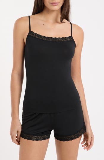 Look cute for your nighttime routine in this lace-trimmed camisole made from an ultracomfortable knit fabric.