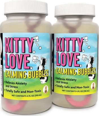 KITTY LOVE CALMING BUBBLES - 2 PACK - 4OZ BOTTLES - Bring a sense of calm and comfort to your feline friend with Kitty Calming Bubbles – a unique, whisker-safe bubble blend infused with soothing pheromones. Designed to gently relax your cat while providing lighthearted enrichment, this peaceful play experience is perfect for anxious or high-energy cats needing a moment of tranquility. Let your cat chase their worries away with Kitty Calming Bubbles – where every gentle pop brings peace and play together. KEY HIGHLIGHTS: Soothe Your Cat with Calming Bubble Magic Transform Stressful Moments into Peaceful Playtime with Kitty Calming Bubbles! • Veterinarian-Recommended Formula • Infused with Cat-Calming Pheromones • Whisker-Safe & Non-Irritating • Dual Bottle Set for Ongoing Comfort. TWO-BOTTLE VALUE PACK: Comes with two 4oz bottles to ensure extended calming sessions and multiple uses, whether at home, during travel, or for easing high-energy behavior over time. The Atomic Bubbles brand has grown over the past decade. Entrepreneurs by nature, the owners began the Bubble Bus in 2005 and have franchises in several states.