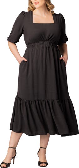 Darling puff shoulders sweeten the silhouette of this frill-trimmed maxi made with an elastic waist to shape the silhouette.