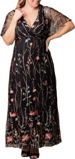 Ethereal and eye-catching, this dreamy gown that beautifully pairs floral embroidery and mesh is sure to turn heads at your next special event.