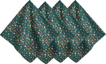 Set the stage for a homey, inviting tablescape with this quartet of cotton napkins that evokes the rustic charm of colorful wildflowers surrounding alpine chalets.