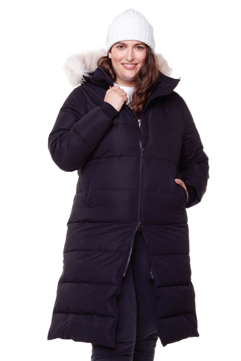 When we say “COLD”, you say “COZY”. Picture it- the coldest day of the year, and you’re outside in the warm embrace of this Plus Size Vegan Down (Recycled) Ultra Long Parka. While you may be the cause of one’s envy, you will certainly not be cold! And that’s what matters right? This is the longest coat in our women’s winter collection, but comfort is key, so it has side-seam zippers and a 2-way front zipper for custom adjusting. Remove the faux fur from the hood for easy washing or remove the hood from the jacket’s collar entirely for a sleek modern look. This coat does it all and has got you covered in -30°C / -22°F. Did we mention it’s 100% Animal-Free and recognized by the Global Recycle Standard (GRS) because it’s fabric is made from 100% recycled plastic bottles? The model is 5ft 11in and is wearing a size 1X. WINTER WARRIOR: Neither a snow covered metropolis or frozen tundra are a match for our winter collection’s -30°C /-22°F temperature rating. NO FUR. NO FEATHERS: There’s no reason our feathered or furry friends need to be implicated in the making of clothing. Vegan ‘down’ is not down at all, but polyester that insulates when wet. 100% animal-free. It’s that simple. PLANET-FRIENDLY: Fabric is made from recycled plastic bottles & is recognized by the Global Recycle Standard (GRS). LONG LOVER: Say hey to more coverage. Who wouldn’t want more warmth on that freezing commute to wherever the hot cocoa is? LOVE TO LAYER? Our jackets are seriously warm, so we have designed them to be worn over light clothing or base layers. If you are someone who loves to layer up with heavier sweaters, we suggest ordering one size up from your normal size.
