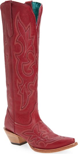 Complete your look with the unmistakable Western style of this handcrafted leather boot featuring a snip toe, intricate embroidery and leather lining in a vibrant turquoise hue.