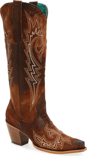 Complete your look with the unmistakable Western style of this suede boot featuring a snip toe, tonal embroidery and leather lining in a vibrant turquoise hue.