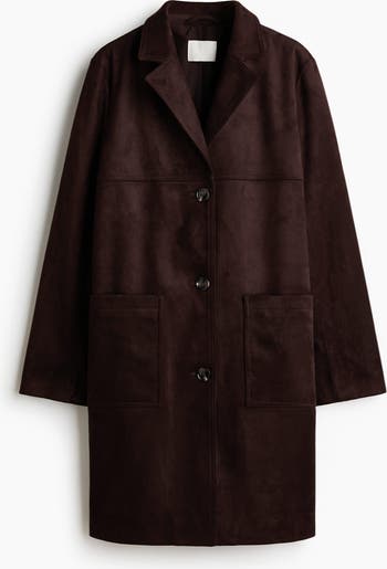 Knee-length coat in woven fabric with a soft, napped finish. Features notch lapels, buttons down the front, patch front pockets and a yoke at the front and back. Lined.