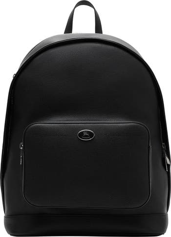 A backpack crafted in Italy from grainy calf leather. The design features a zip compartment at the back sized to fit a 13-inch laptop and is lined in a cotton blend woven with the Burberry Check in signature sand beige. Finished with an enamelled Knight stamp, an archival motif first seen on Burberry bags in the 1980s.||Top handle|Adjustable shoulder straps|Two-way zip closure|Exterior zip pocket|Zip Laptop compartment at back|Hand-painted edges|Brushed metal hardware|Equestrian Knight Design plaque at front|Burberry Check lining|Comes with a dust bag