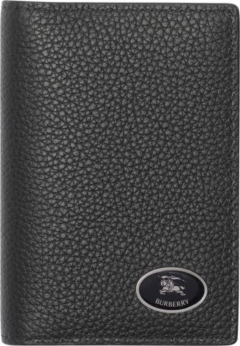 A folding card case made from grainy calf leather with a partial Burberry Check lining in our signature sand colourway. The design is finished with an enamelled Knight stamp plaque, an archival motif first seen on Burberry bags in the 1980s.||Three card slots|Slip pocket|Hand-painted edges|Equestrian Knight Design plaque at front|Embossed Burberry lettering at inner|Comes with a dust bag