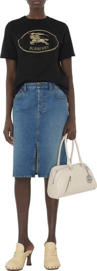 A T-shirt in lightweight cotton jersey, cut to a regular fit. The crew-neck style is embroidered with our Knight stamp – an archival motif first seen on Burberry bags in the 1980s.