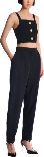 Bralette top with 3 "Lion Head" buttons Straight neckline Straps Visible zip fastening on the back with Balmain Paris-engraved slider Cropped, fitted cut Model measures 180cm and wears a size 36 Main material: 85% viscose 15% polyester Made in Italy Item: GF1AA415KJ43 100% of the viscose fibres used to make this garment come from certified, sustainably managed forests