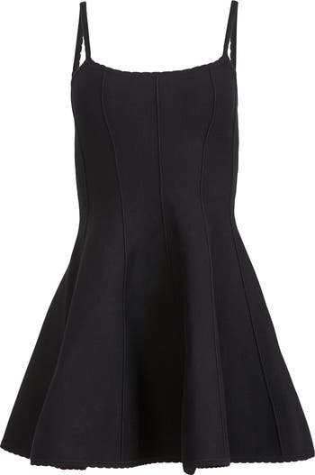 Our Flared Corset Dress features low cut square neckline and adjustable straps with scalloped detail. Knitted from soft structured jacquard knit with corset seaming to show off your waist.
