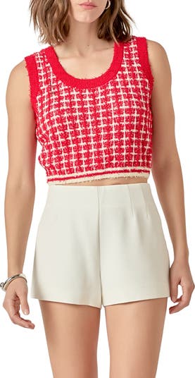 A playful pattern enlivens the look of a sleeveless crop top that's sure to elevate your everyday style.